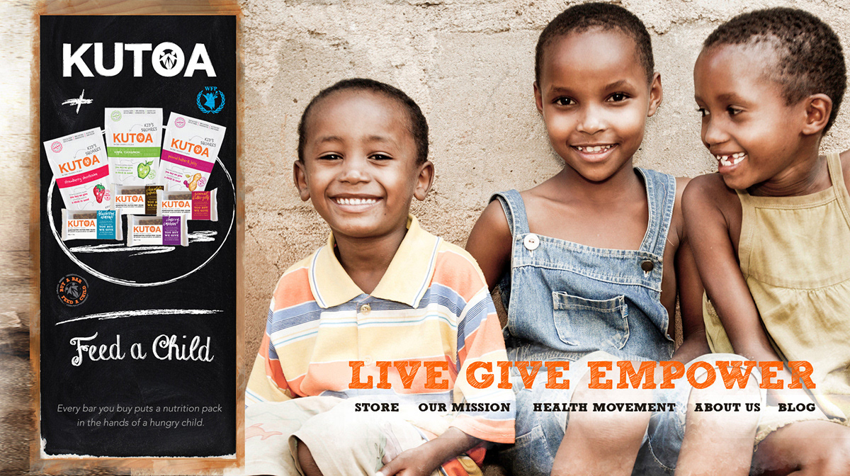 Kutoa entered a saturated health-food market with a "Buy-One-Give-One" model. The goal was to build a premium brand identity that resonated with health-conscious consumers at Whole Foods and Kroger while keeping the humanitarian mission at the forefront.